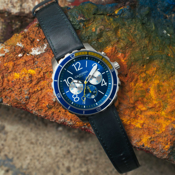 California Watch Co. Mavericks Chrono Leather Navy Yellow