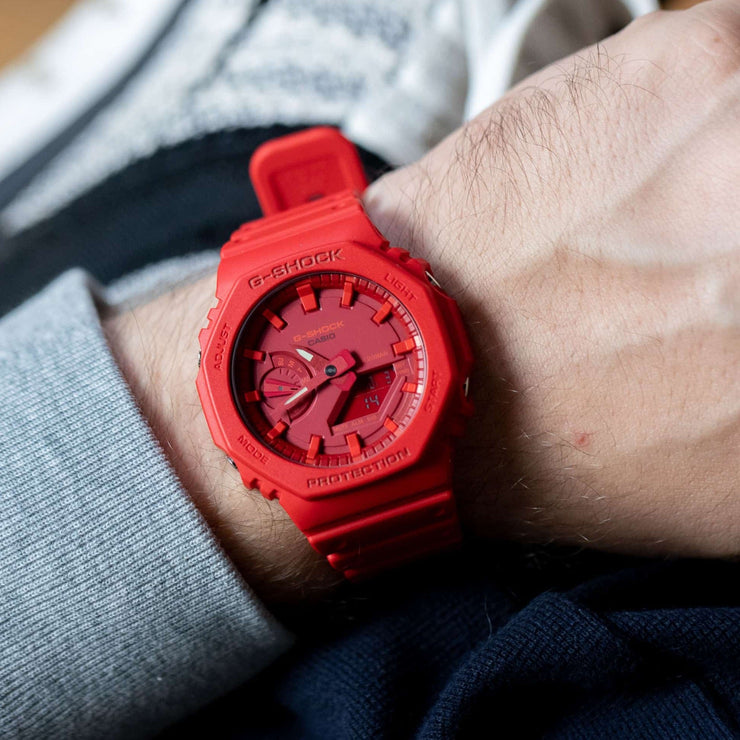 These new models inherit the octagon form that was also employed for the original DW-5000C. Analog-digital timekeeping comes packed into a no-nonsense simple design without sacrificing G-SHOCK level toughness.