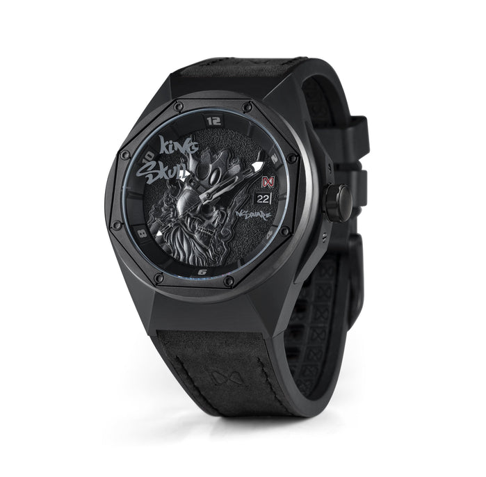 Dial: Matte Black. The 3D King Skull emblem is paired with intricately engraved skull textures.