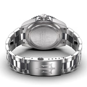 Bezel: Black ceramic, uni-directional rotating 120 click, ultra-scratch resistant.