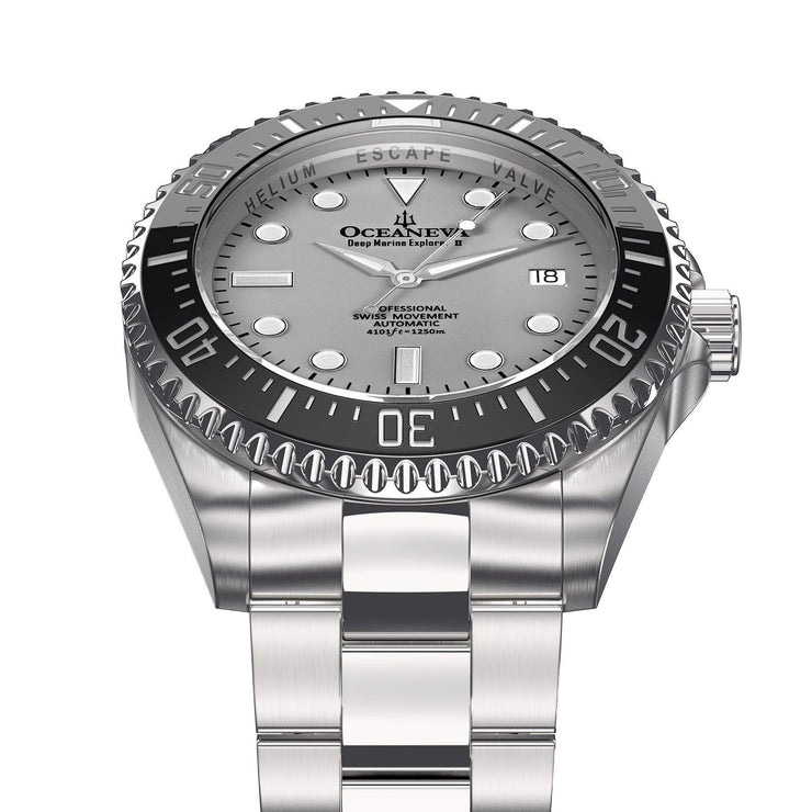 Introducing the epitome of precision and luxury - the Oceaneva™ Men's Deep Marine Explorer II 1250M Pro Diver Watch Gray. Crafted for those who lead, innovate, and conquer, this masterpiece is not just a timepiece; it's a testament to excellence. Designed for the elite, the trendsetter, and the adventurer in you, this watch is where your story of success and milestones begins.
