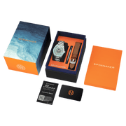 The Fleuss Automatic Severn collection draws inspiration from the legacy of Henry Albert Fleuss, a visionary who made significant advancements in diving technology. The collection's name, 'Severn,' is a nod to the Severn Tunnel construction project where Fleuss's apparatus was first used under operational conditions in November 1880.