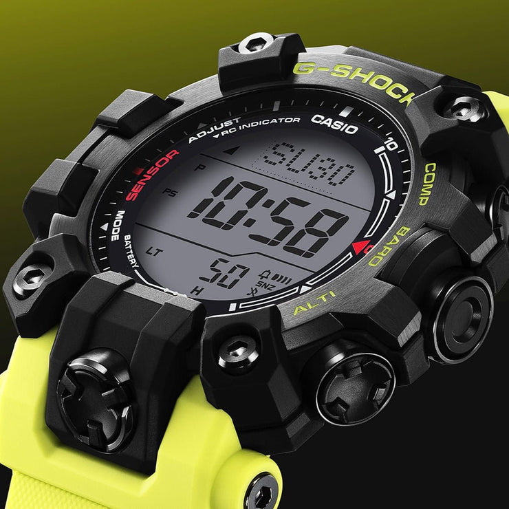 The MUDMAN GW-9500MRY not only features a dust, mud, and shock-resistant structure, but also delivers radio-controlled, solar-powered functionality and Triple Sensor measurements. The digital compass display with improved readability employs a duplex LCD for greater practical utility. Stainless steel for the bezel components and black ion plating complete the watch’s intrepid look. This tough watch delivers what you need to make quick decisions and take decisive action in the harshest of environments.