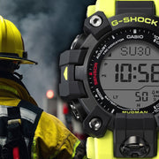 Whatever you’re doing, wherever you are — the G-SHOCK Master of G line has your back. For total support in the harshest environments, this MUDMAN watche delivers peak performance in punishing conditions on land. It features bold black to exude toughness and a band in the same bright yellow used for emergency rescues and safety signs. This innovative design is a sure fit for the world of professionals involved in rescue efforts and other critical missions.