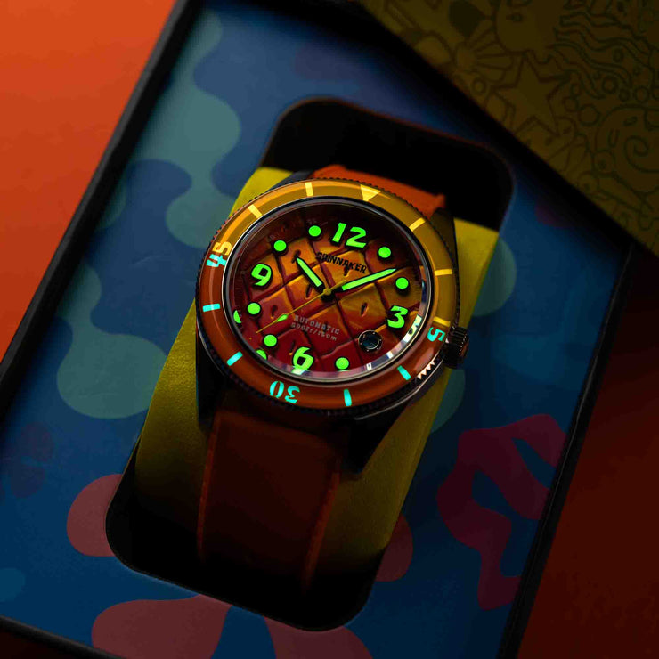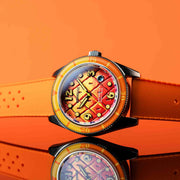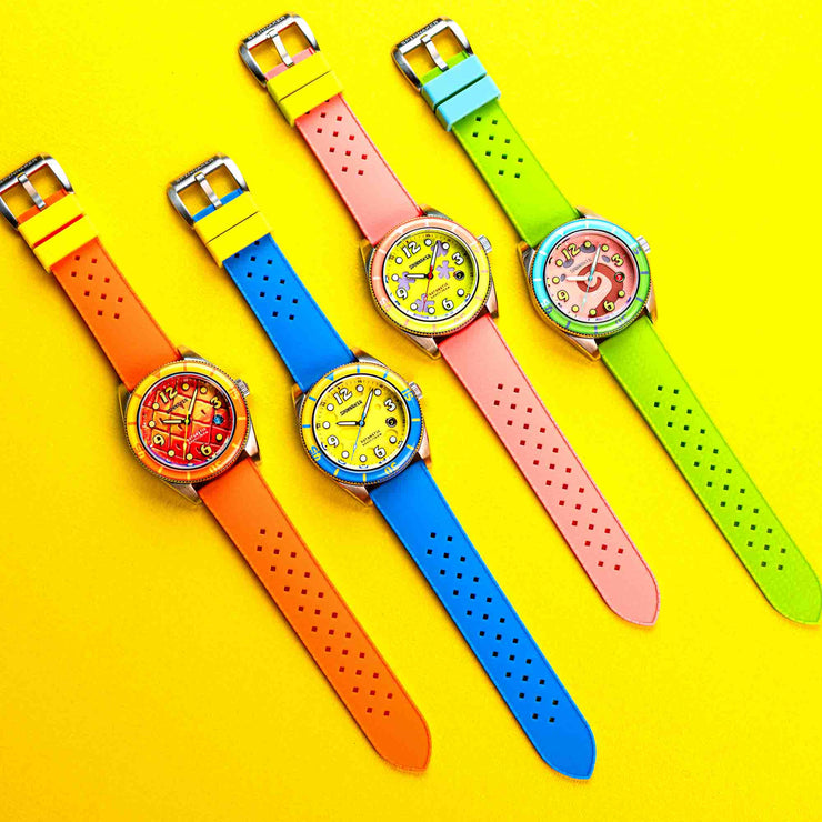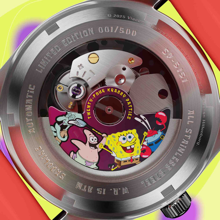 The Fleuss Automatic SpongeBob SquarePants Conch Street Limited Edition brings fans a sophisticated yet playful wearable piece of their favorite underwater world. Designed with finesse, this collection embodies the laughter, friendship, and unforgettable adventures of SpongeBob SquarePants, making every glance a ticket back to Conch Street. Perfect for those who believe in “Imagination!” and who know that friendship and good times will always transcend the ocean depths.