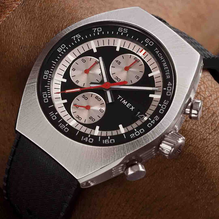 Timex Legacy Tonneau Chronograph 42mm Black Silver angled shot picture