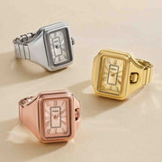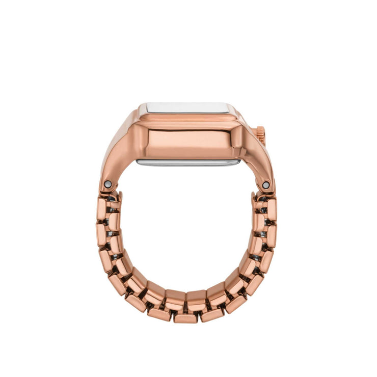 Telling time has literally never been more stylish thanks to the Raquel Watch Ring. Get your hands on one of Fossil's most adored accessories, featuring a rectangular shape inspired by their coveted Raquel watch, rose gold-tone sunray watch face and a flexible band to fit any finger.