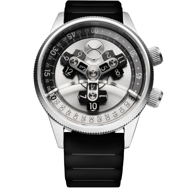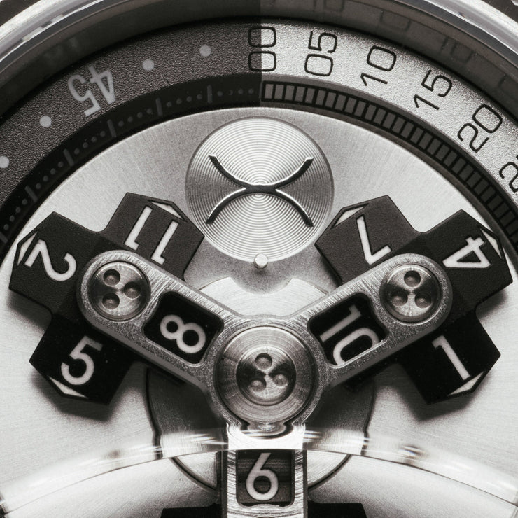 Xeric Vendetta II Automatic Wandering Hour Silver Black - Watches.com - V2A - 1113 - 03R