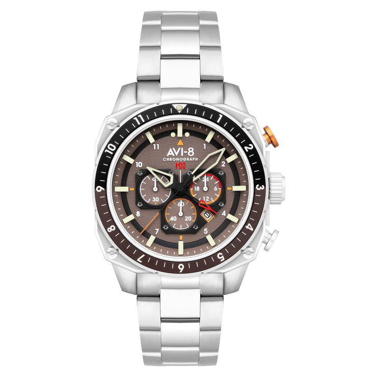 Equipped with the inner mechanics of a split time read-out Japanese chronograph movement, the Hawker Hunter Atlas Dual Time Chronograph also enables the wearer a multiple time zone readouts, providing a timepiece complete with the spirit of a pioneering aircraft of the jet age with the engineered construction and functionality to match.