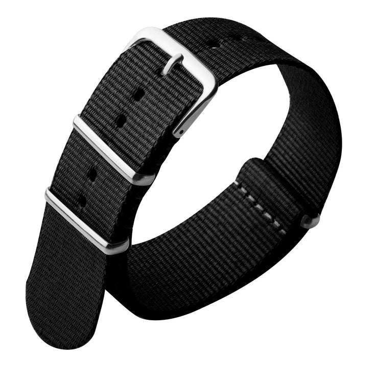 Xeric 22mm Military Strap Black with Silver Hardware angled shot picture