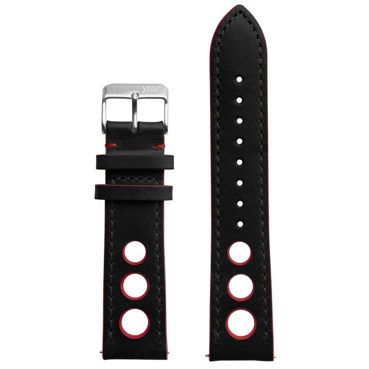 Xeric 24mm Horween Leather Rally Black Red Strap Silver Buckle - Watches.com - XRC - RLY - 24 - BKRD