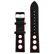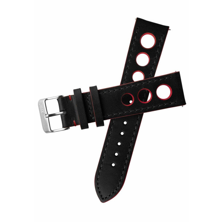 Xeric 24mm Horween Leather Rally Black Red Strap Silver Buckle
