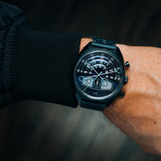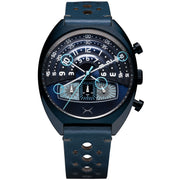 We took our favorite parts of the Halograph and upgraded them with a retro-automotive twist. Bold colors and a sleek new case design take the Halograph in a direction it has never gone before. The Halograph III Chrono runs on a precise Miyota movement with a linear chronograph displayed at the bottom, like the gauges on the dash of a race car.