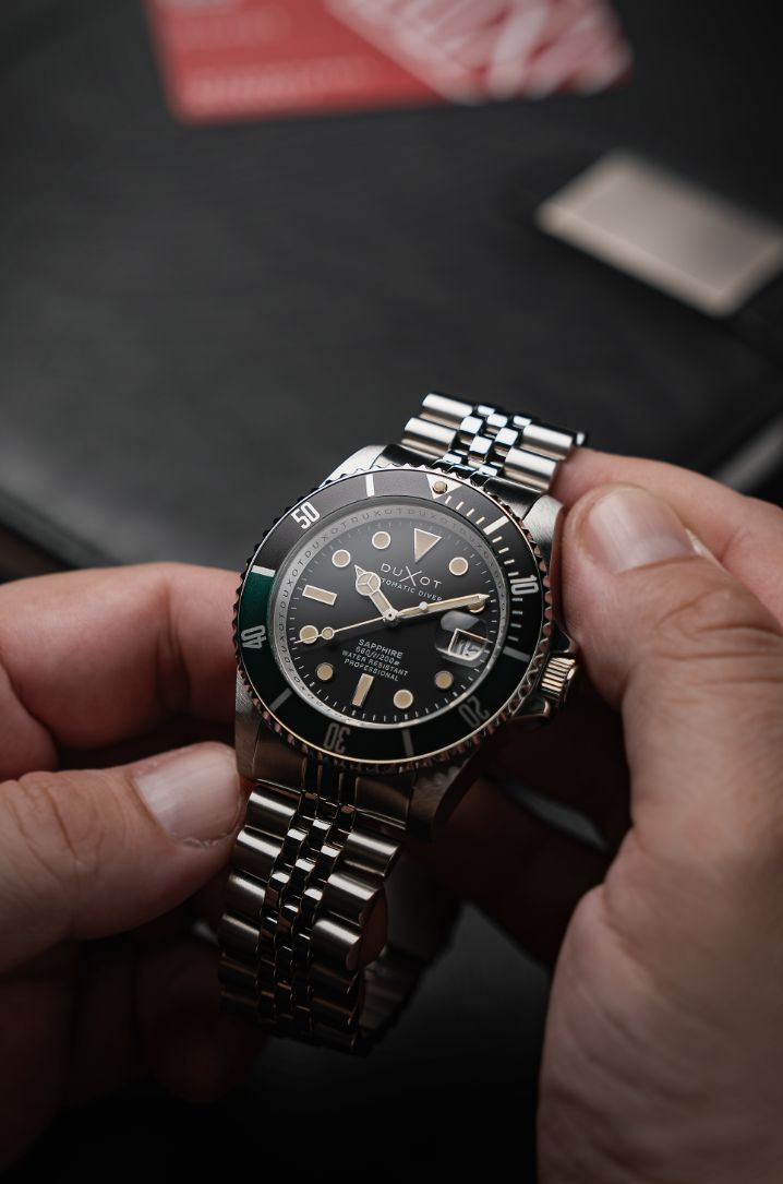 Duxot Atlantica Diver Automatic Pitch Black angled shot picture