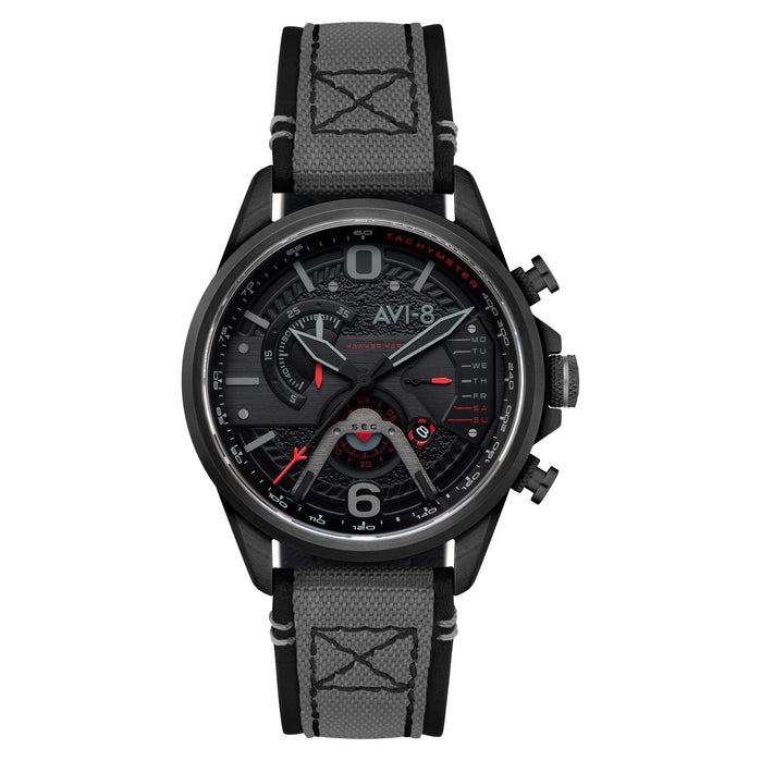 In the annals of aviation history, perhaps no fighter plane stirred as much controversy, excitement and technological wonder as the Hawker Harrier “Jump Jet”, which flew for the Royal Air Force and for the US Air Force during the latter part of the 20th century. This incredible aircraft, powered by the famed Rolls Royce Pegasus series of engines provides the aesthetic backdrop for Hawker Harrier II Dual Retrograde Chronograph timepieces.