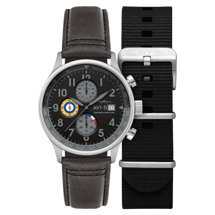 AVI - 8 Hawker Hurricane Classic Chronograph Grey Black - Watches.com - AV - 4011 - 0U