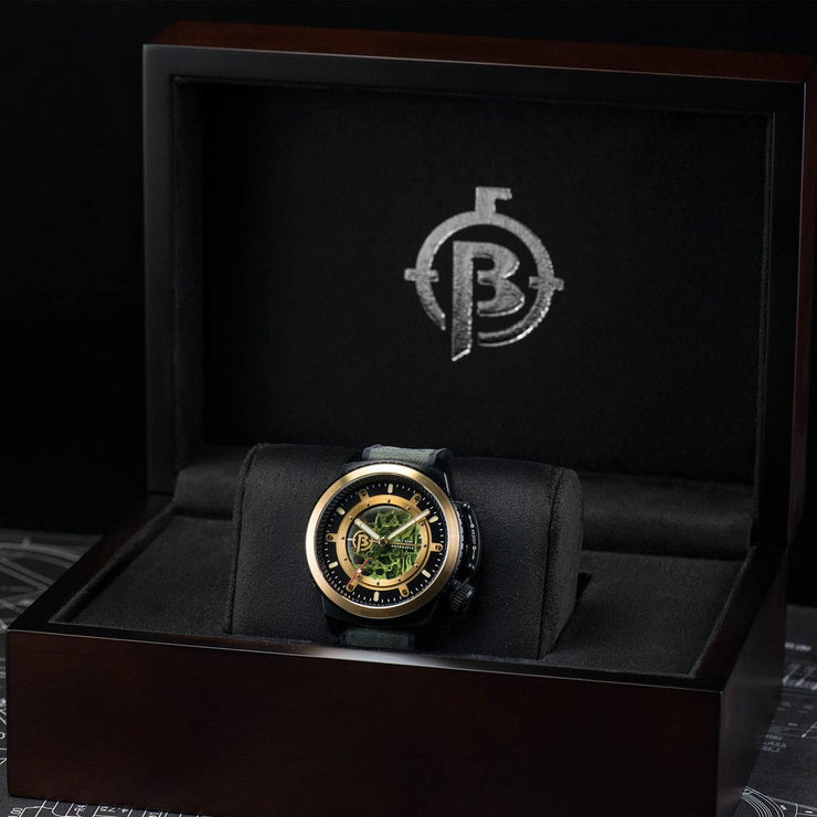 The New Trafalgar features a patented bezel control feature which is used to both wind the mainspring of the automatic movement and more critically the bezel is used to set both time and date with ease.