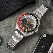 An echo to the best of watchmaking and a motor-racing spirit. This limited edition timepiece of 77 pieces exudes, class, style, and masculinity that has long been celebrated. Easily wearable, comfortable, and injected with a hard-wearing 70s style. This watch comes equipped with an additional leather strap for added optionality and versatility