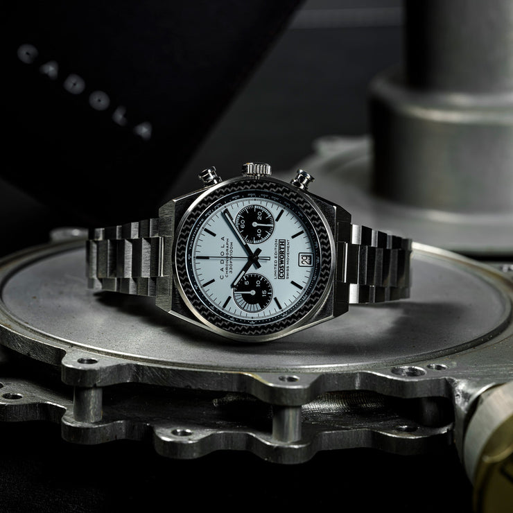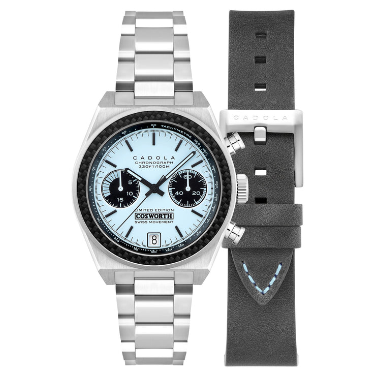 A limited-edition timepiece, the Cosworth Costin features the pinpoint precision of a high-specification Swiss chronograph movement enabling split time measurement. Robustly engineered, the Costin comes with carbon fiber bezel detailing, a bold bracelet design, and an additional strap for a degree of added versatility and style.