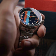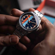 With style, substance and bold motorsport spirit, this watch perfectly captures the wants and needs of the motorsports professional. High-quality mechanics are housed in a robustly enduring build of solid steel for a timepiece built and designed to perform.