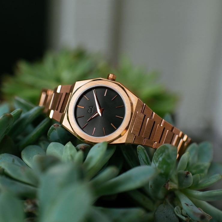 California Watch Co. Hollywood 32 Rose Gold Black angled shot picture