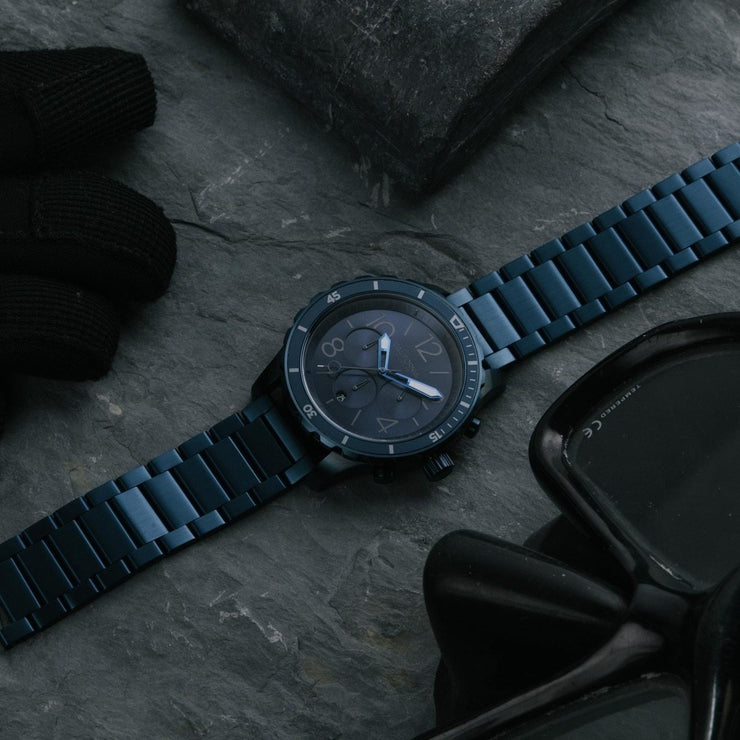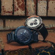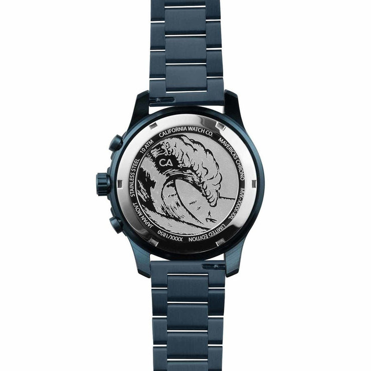 Mavericks is home to the biggest, most powerful wave on the west coast. The Mavericks Collection defines tough, with bold numerals, a unidirectional rotating bezel and a 60 minute chronograph. The watch is water resistant to 10 ATM, and features lume hands that make it ultra-legible whether you're out at night or doing a deep dive. Built-in quick release springbar system allows you to effortlessly swap out straps if you want to change up your look.