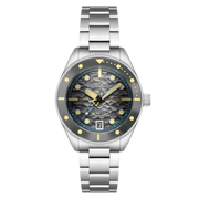 Inspired by the depths of the Challenger Deep, Challenger Automatic is a masterfully engineered dive watch. The 3D-moulded dial adds striking dimensionality, evoking the rugged textures of the ocean floor, while the deep-etched caseback reinforces its maritime heritage. Its 42mm stainless steel case offers a refined yet robust profile, perfect for both exploration and everyday wear.