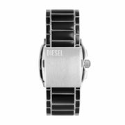 Diesel's 40mm Cliffhanger watch features a silver sunray dial, chronograph movement and black lacquer and stainless steel bracelet.