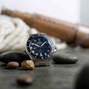 The Bandiera features a Japan Quartz movement with a date display, contained within a 42mm case diameter. Its unidirectional turning bezel adds a stylish touch, while its band provides comfortable and reliable wearing. Ideal for those who appreciate classic timepieces.