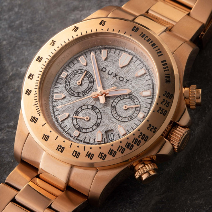 The epitome of luxury. A bezel inset with handset trapezium cut highest grade cubic zirconiums dress out a precise chronograph movement for a watch that is absolute show stopper of a timepiece. A watch for generations, a watch with style, performance, flair and built to the highest standards of watchmaking. Each watch is one of a limited edition series, uniquely numbered - never to be manufactured again, thus elevating even further this rare, magical timepiece reserved for the very few.
