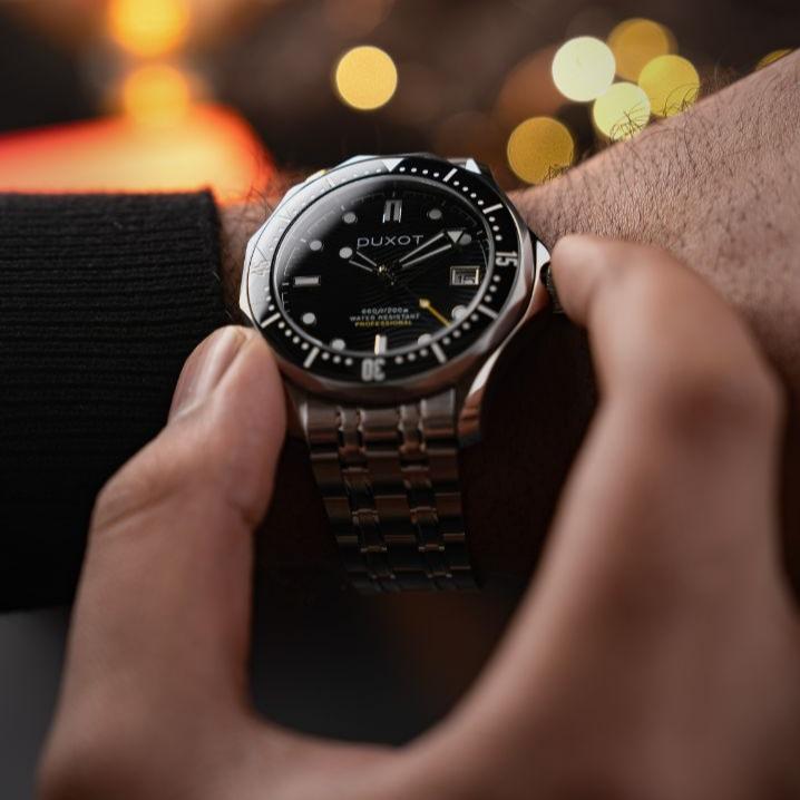 Experience the convergence of exquisite design and top-notch performance with the Henri Diver Automatic. Crafted with intricate Japanese automatic movement, this timepiece features a bi-directional turning bezel and a ravishing brass dial with wave pattern. This timeless aesthetic is paired with water resistance of 20 ATM. A true timepiece of precision and sophistication.