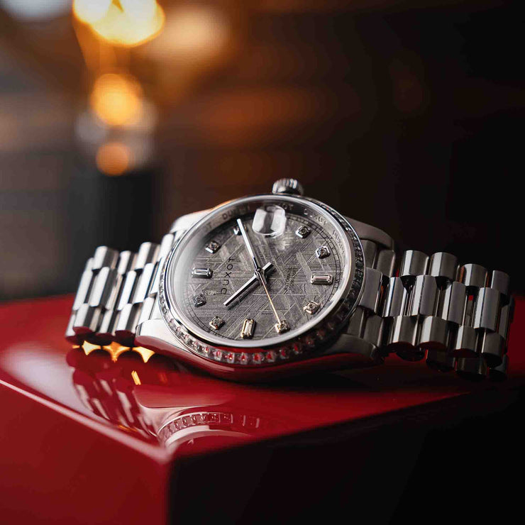 Introducing the Serenata Rainbow Diver Automatic, an exquisite timepiece for those seeking the pinnacle of luxury and style. Crafted with a 40mm stainless steel case, this watch is enhanced with a dial made from precious materials and a bezel adorned with stones, creating a vibrant, rainbow effect. With only 50 pieces each colourway, this timepiece makes a statement of exclusivity.