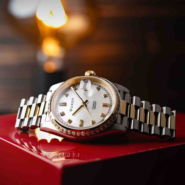 Introducing the Serenata Rainbow Diver Automatic, an exquisite timepiece for those seeking the pinnacle of luxury and style. Crafted with a 40mm stainless steel case, this watch is enhanced with a dial made from precious materials and a bezel adorned with stones, creating a vibrant, rainbow effect. With only 50 pieces each colourway, this timepiece makes a statement of exclusivity.