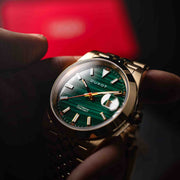 Lead the pack with the Vezeto, a luxurious 40mm watch designed to elevate your style. Meaning "to lead" in Hungarian, this dial of this timepiece is crafted with exclusive material. It also features a Japanese-made automatic movement with a sophisticated date display for accurate timekeeping. Enjoy a combination of luxury and sporty design in a single, elegant watch.