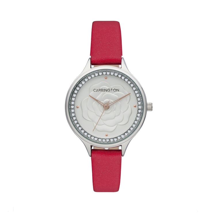 Following the classic aesthetics of its predecessor, this iteration of the Elsie collection features a dome-shaped lens. Underneath is a plain colour dial with a layered floral pattern, which is subtle yet instantly recognizable. The satin strap adds a modern touch, making this timepiece the perfect blend of classic and contemporary aesthetics.