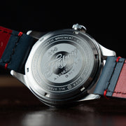 Designed to master the art of global adventure, the Airmaster GMT combines a bold modern aesthetic with classic aviation-inspired design. No matter you are crossing continents or navigating the city, the timepiece tracks three time zones with with an NH34 Japanese automatic GMT movement. Paired with a comfortable leather strap, it is ready for adventures near and far.