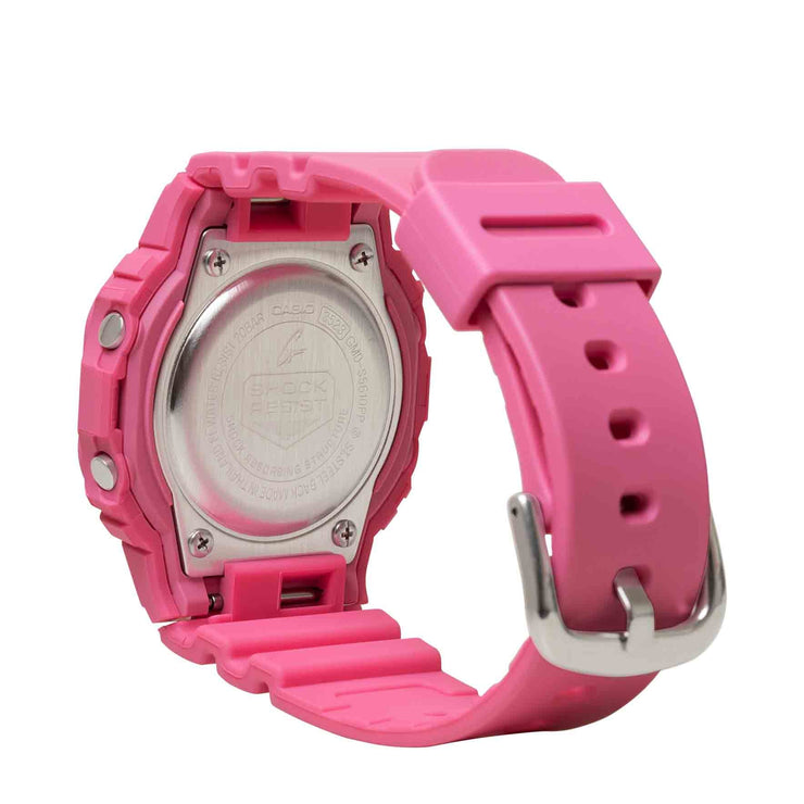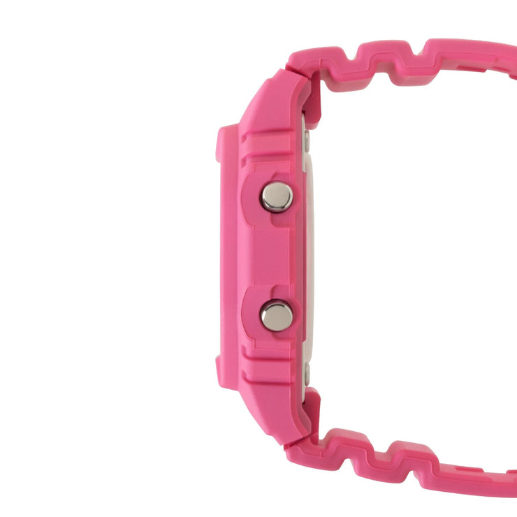Empower yourself with pink. This powerfully pink lineup features stylish, monochromatic, subtly nuanced designs that exude individuality. No sticky sweet pinks here, just high-impact strength. Featuring a bright pink with a matte finish for a soft look, the simply styled bezel and band are versatile enough to coordinate with any outfit. The deep pink of the face adds a pop of color that pulls the design together for a watch that projects focus and strength. Key resin components used in the bezel, band, and more are made with bio-based resin, a material produced using renewable organic resources that is expected to help reduce environmental impact.