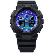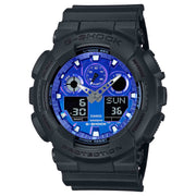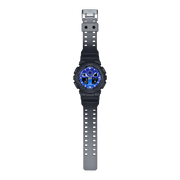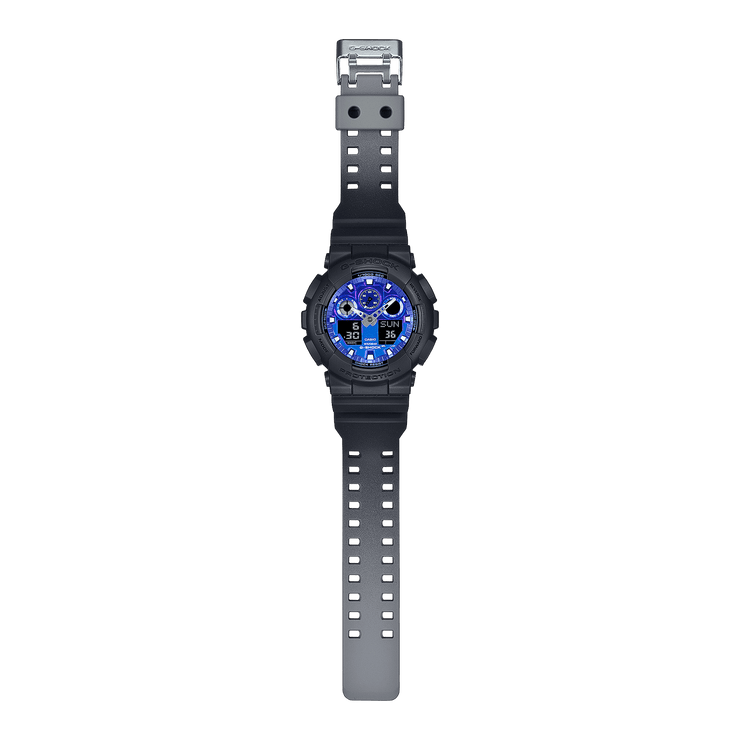 Fiery and bold G-SHOCK watches glowing with flames of awesome colour. G-SHOCK is all about taking on challenges, and the vivid colourful gradation of the Flame Inside line puts this blazing passion front and center. Beginning with the GA100 with distinctive large case and the GA2100 with octagonal case, the design brings in motifs of billowing smoke for the band and features a brightly burning dial in flames of blues or oranges. Choose your favourite look — the GA100FL-1A or GA2100FL-1A with vivid blue dial and gradated gray-on-black body, representing the hottest flames of conviction against rising white plumes of smoke; or the GA100FL-8A or GA2100FL-8A with bold orange dial and gradated black-on-gray body, evoking flames of fiery passion against a dark smokey backdrop.