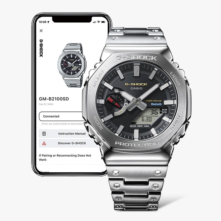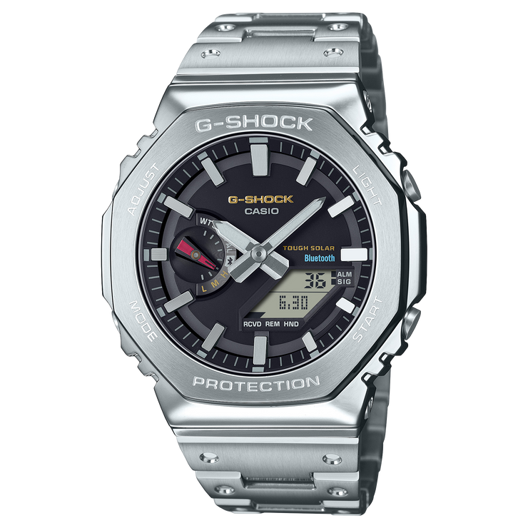 The stainless-steel case also features the same screw-lock construction as the original to ensure a tight seal. Dimpling applied to metal band pieces reproduces the look of the resin band design of the very first G-SHOCK. And the fact that the watch is crafted at Yamagata Casio, the “mother factory” where the first-ever G-SHOCK was made, brings the whole design full circle.