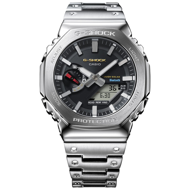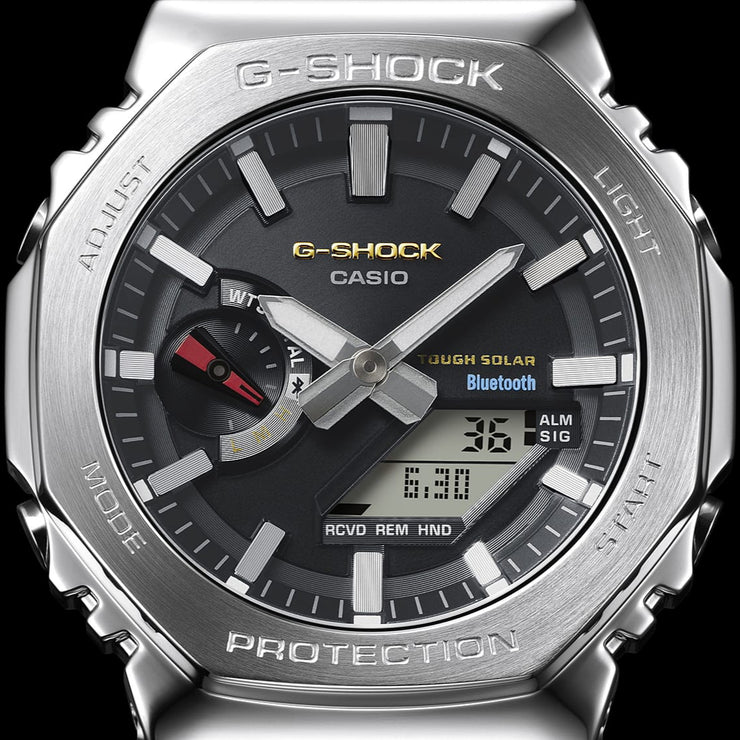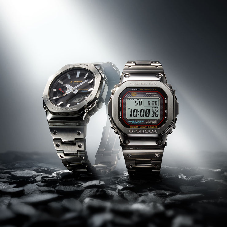 Carry on the G-SHOCK legacy — go traditional with the original dial colors of the DW5000C, the very first G-SHOCK, now in a full-metal watch. The classic G-SHOCK colors are on full display with faithful reproductions of G-SHOCK red, representing the passion to take on challenges; blue, symbolizing excellent water resistance; and yellow, signifying outstanding shock resistance. Crafting a stainless-steel bezel of this depth and dimension requires a time-consuming forging, cutting, and polishing process.