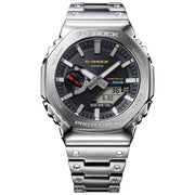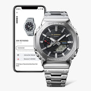 The bezel top is finished beautifully with a hairline treatment and the beveled edges with a mirror finish for maximum textural beauty. Achieving a full-metal timepiece with the same original G-SHOCK shock-resistant structure is no easy feat. We installed buffering components made of fine resin between the stainless-steel bezel and case and employed a three-pronged lug for the band connection to disperse shocks to the connecting pipes.