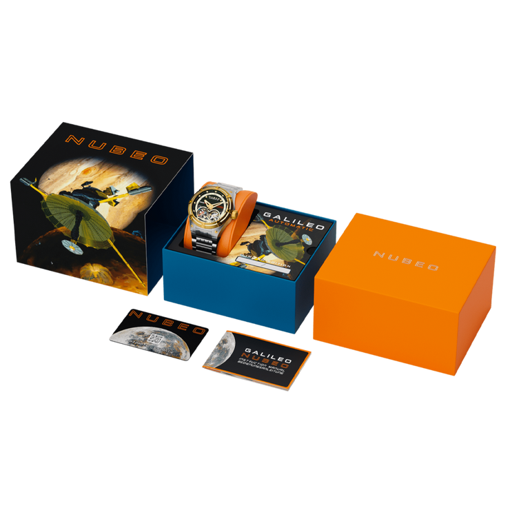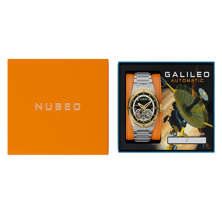 Named after the ground-breaking Galileo spacecraft, Galileo was the first spacecraft to orbit an outer planet and deploy an entry probe into an outer planet's atmosphere. This remarkable timepiece captures all elements of modern-day space-inspired design for a captivating, limited edition timepiece.