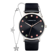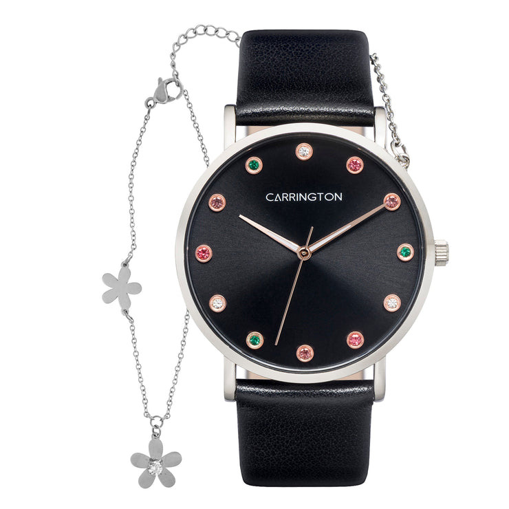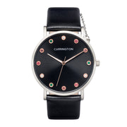 The Luella is an artfully crafted timepiece. On top of the sunray dial it features a colourful stone on each index, adding a touch of flair and playfulness to its elegant design. The thin alloy case perfectly complements the genuine leather strap, ensuring both style and durability. The perfect piece that colours up your outfit.