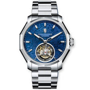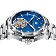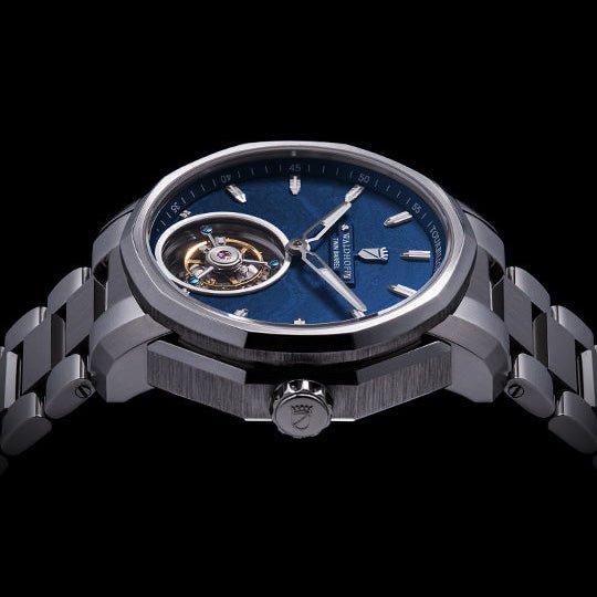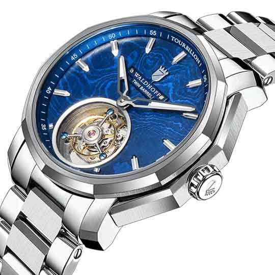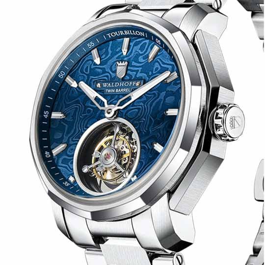 The Waldhoff Continental S is the newest addition to our collections. It is a blend of classic refinement and sportiness. It features a bespoke Damascus steel dial and a muscular stainless steel case. It’s front side is understated and easy to read at a glance, yet the backside is a showcase of a beautifully decorated tourbillon movement under a Swiss sapphire crystal.