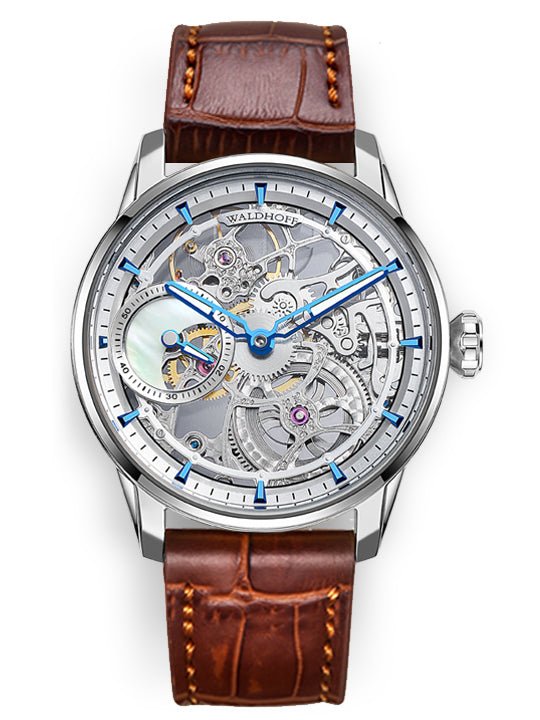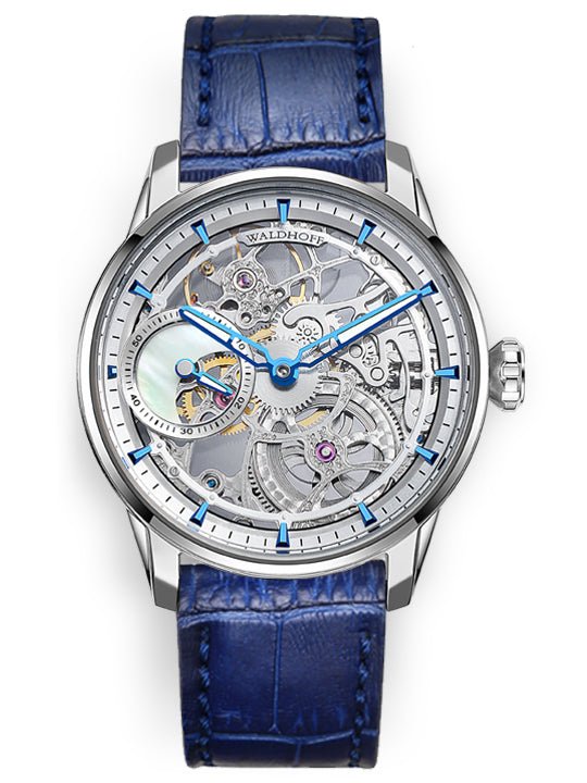 The Paragon Pearl is their newest version in the Paragon line of products. It features an intricately skeletonized manual-winding movement, featuring a genuine Freshwater Pearl sub-dial, Exposition caseback, Premium leather strap with a solid steel Deployant Buckle, 3ATM water resistance, Diamond Cut hands and Swiss luminous pigment.