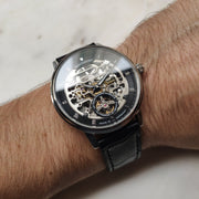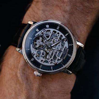 The Capital is our most Classic style. It features a beautiful automatic movement made visible through a large opening on the dial. Its baseplate is CNC machined and beautifully finished. The HZ 7500 movement features a an extra-large mainspring, holding an exceptional 80 hours of power reserve, nearly double that of most automatic watches.