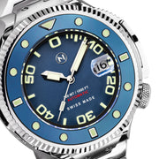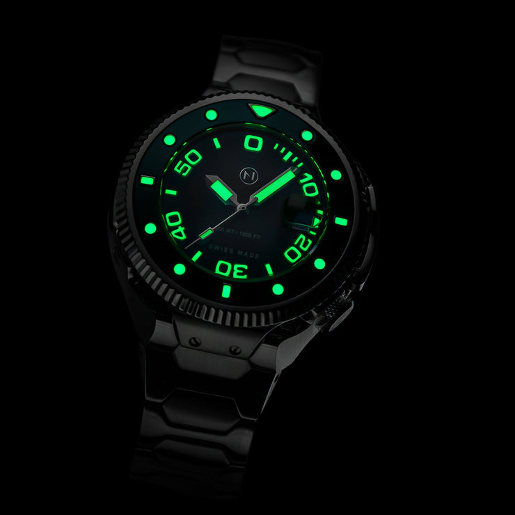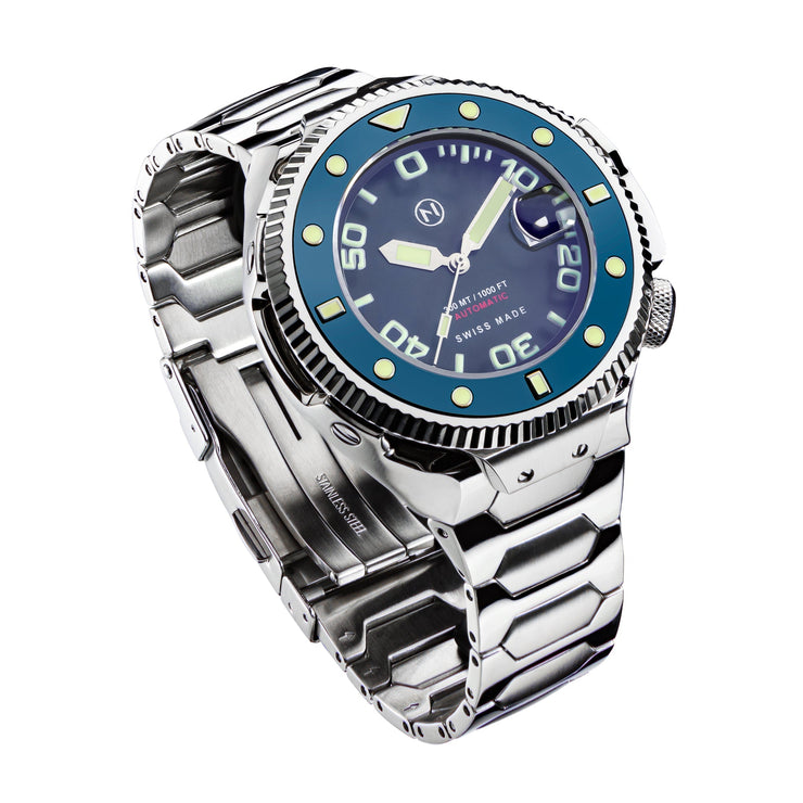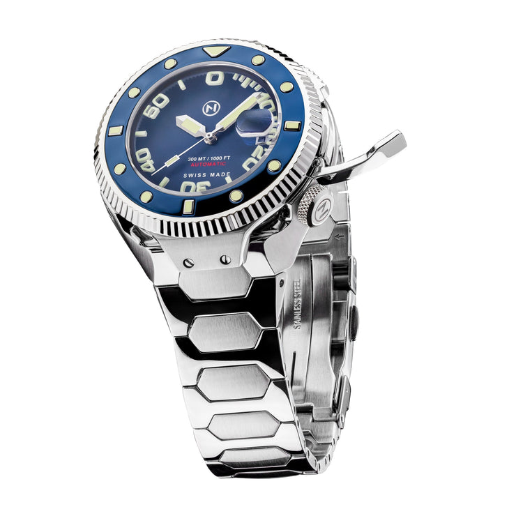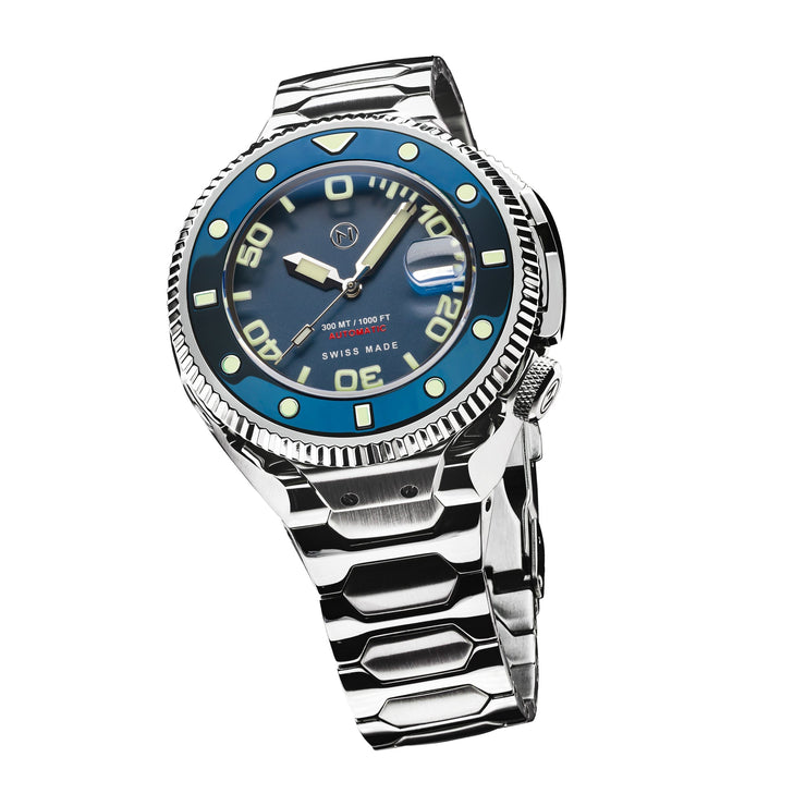 The breakthrough of the turning bezel locking system is a nod to the man who values both the thrill of the dive and the assurance of Swiss craftsmanship. Lock in. Dive deep.