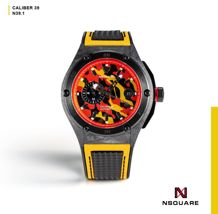 Dial: Black/Yellow/Red Camouflage, Luminous Index. Logo Printed at 12 O’clock