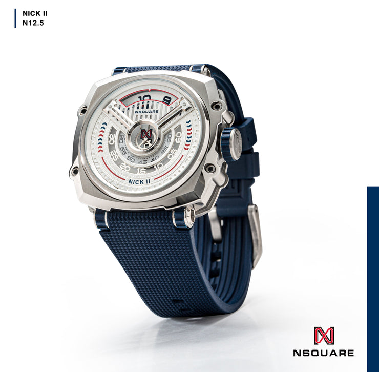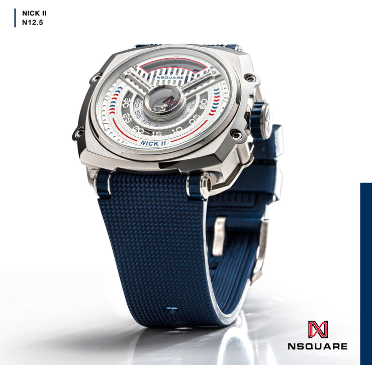 Inspired by the mystery of speed and distinctive aesthetics, the N12 Nick II features a captivating openwork dial. This hollow design showcases the ultimate fusion of fashion and artistry. The innovative dual-track minute markers redefine how time is displayed, offering a distinctive and engaging experience. The N12 Nick II is crafted with robust materials to ensure durability. The stainless steel case, treated with precision, safeguards the intricate inner workings of the timepiece. The openwork dial, accentuated by the dual-track minute markers, presents time in a unique way, offering an entrancing visual experience. Paired with a lightweight rubber strap, the watch adapts seamlessly to various occasions, effortlessly integrating into your daily life.