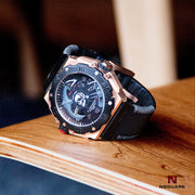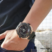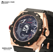 NSquare has merged its new Npower design with SKUll 13’s dark pirate aesthetic, incorporating elements like treasure maps, anchors, and steering wheels into the design. Pirate Storm skillfully combines the artist’s unique touch with the distinctive characteristics of both brands. The watch retains NSquare’s signature dynamic design, with bold lines and a Ring Lock mechanism at the nine o’clock mark, giving it a professional, three-dimensional appearance. The hour hand is creatively shaped like a giant anchor, breaking away from traditional designs, while the second hand takes the form of a steering wheel. With the pirate-themed SKUII design stamped onto the dial, this watch beautifully captures the essence of both brands' collaboration.